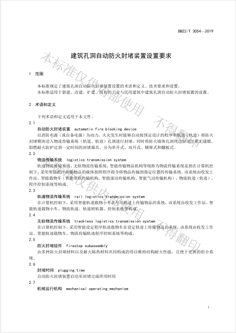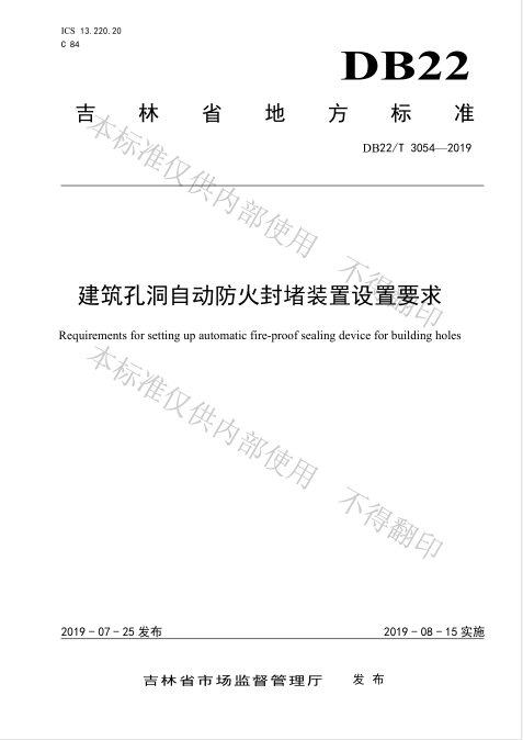 《建筑孔洞自動防火封堵裝置設置要求》地方標準已于2019.8.15頒布實施